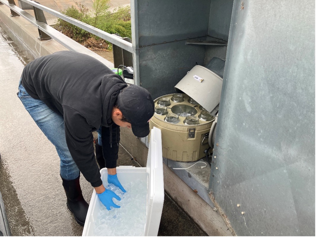 To support our sampling efforts, field testing equipment such as flow meters and water quality probes are tremendously helpful to get a full picture of water quality. The probes are a device that can be placed directly in the water to measure temperature, pH, dissolved oxygen, and other key characteristics.