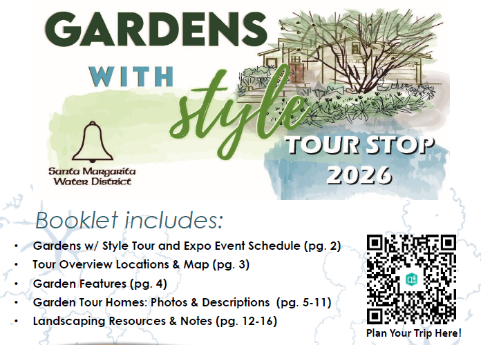 SMWD’s Gardens with Style Tour will feature homeowners just like you that display climate friendly sustainable landscapes throughout our community. This self-guided tour will give you the opportunity to visit these beautiful landscapes and speak with the homeowners and their landscape designers.